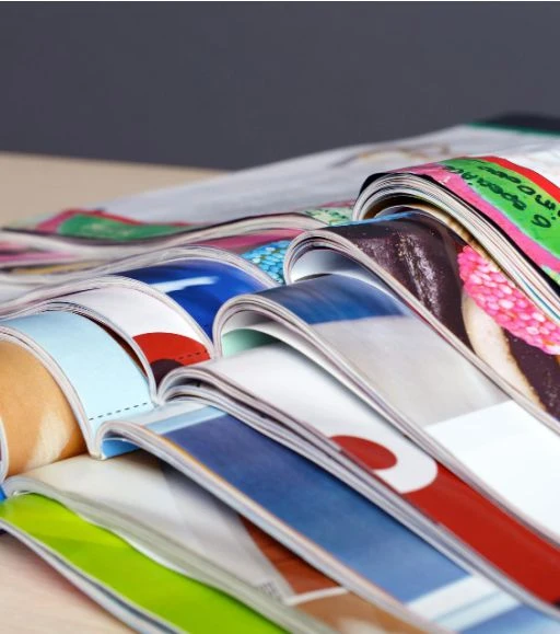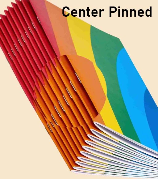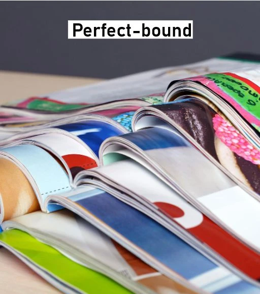 Center pinned (ideal for 8–64 pages), Perfect bound (great for larger catalogues), Wire bound (used for manuals or look books) Trifold (also known as letter fold or C-fold), Folds into three equal panels or Bifold